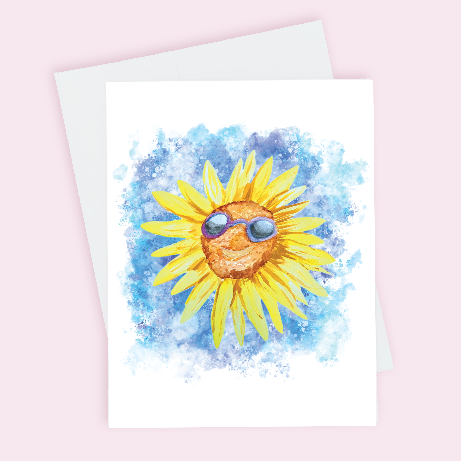 This cheerful Sunflower with Sunglasses greeting card radiates sunny vibes, featuring a bright sunflower wearing cool shades. Perfect for spreading fun and positivity, it’s a great card for any occasion, guaranteed to bring smiles.