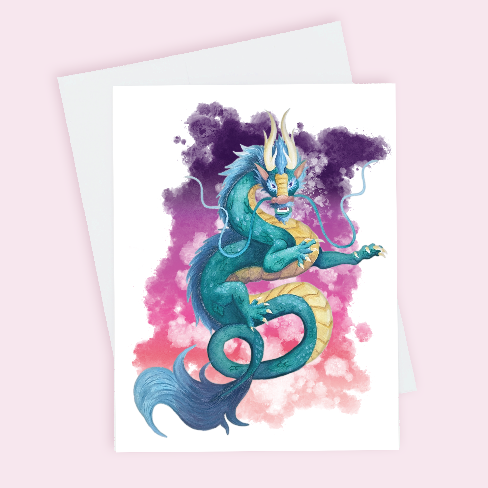 This striking Emerald Dragon greeting card features a majestic green dragon winding gracefully across the design, perfect for sending a bold and mystical message. Carefully crafted, it brings a sense of wonder and adventure to your words, making it ideal for fantasy lovers and special occasions alike.