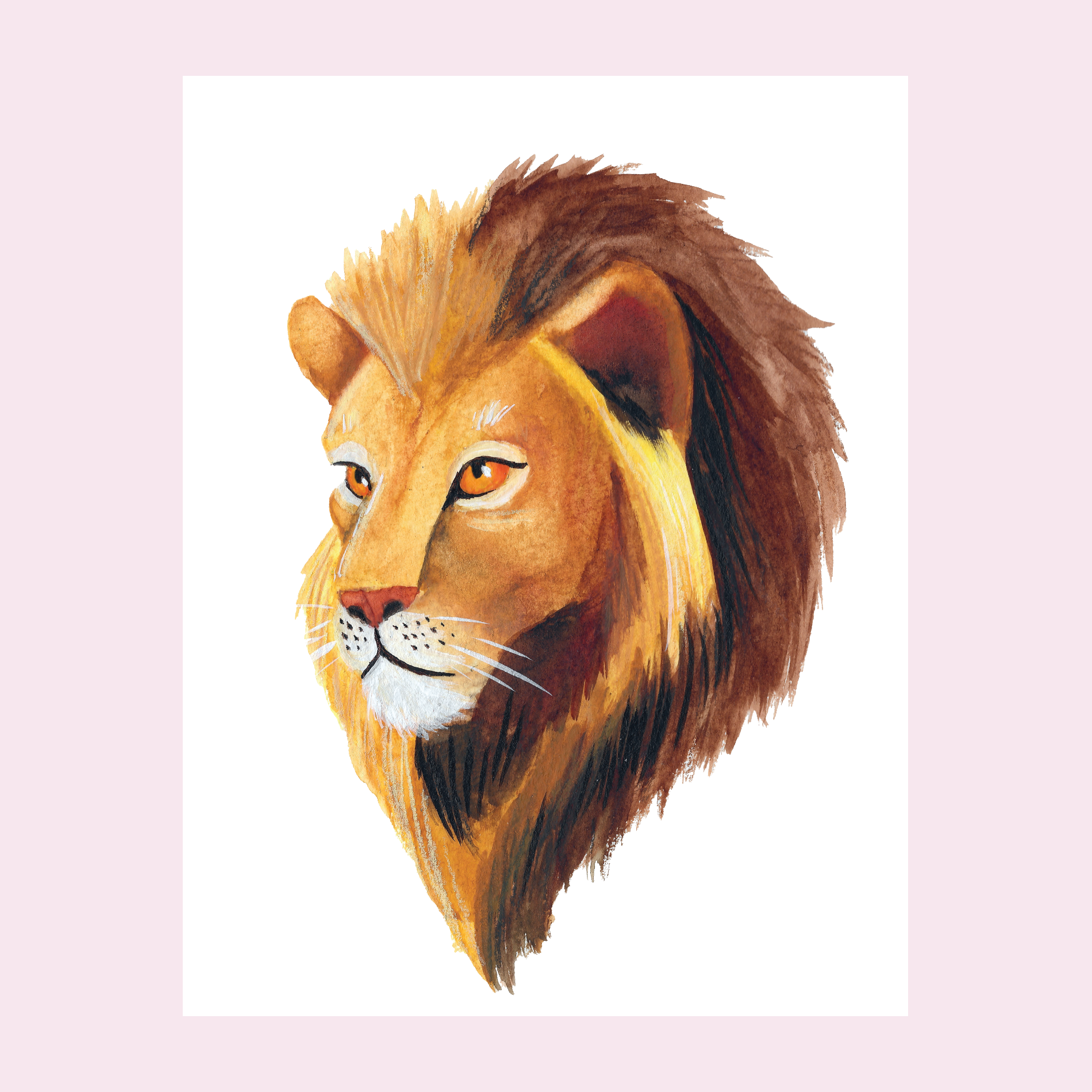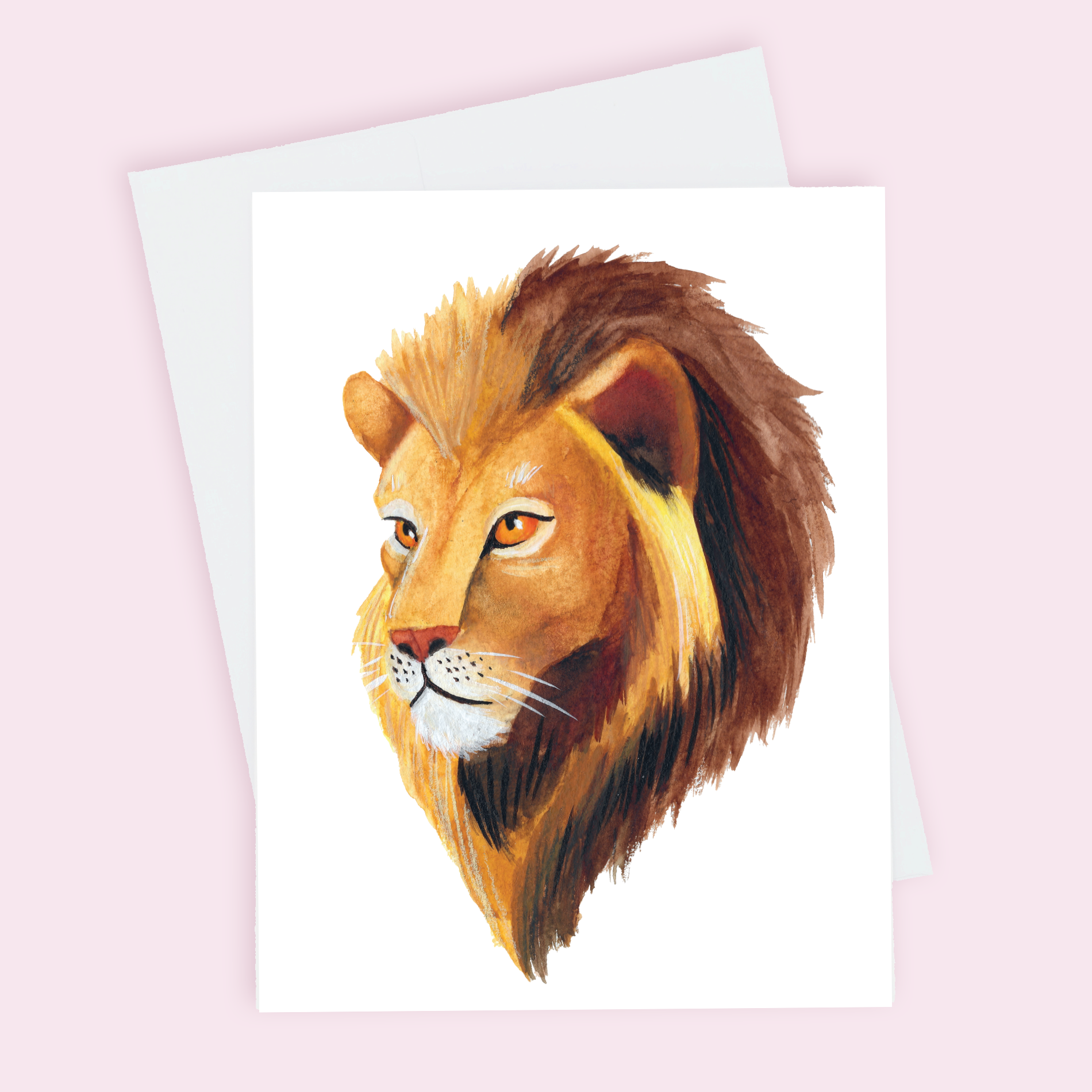 This regal Lion greeting card features a detailed bust of a lion with a flowing mane, capturing strength and majesty in every line. Whether expressing admiration or encouragement, this card carries a bold and dignified tone.