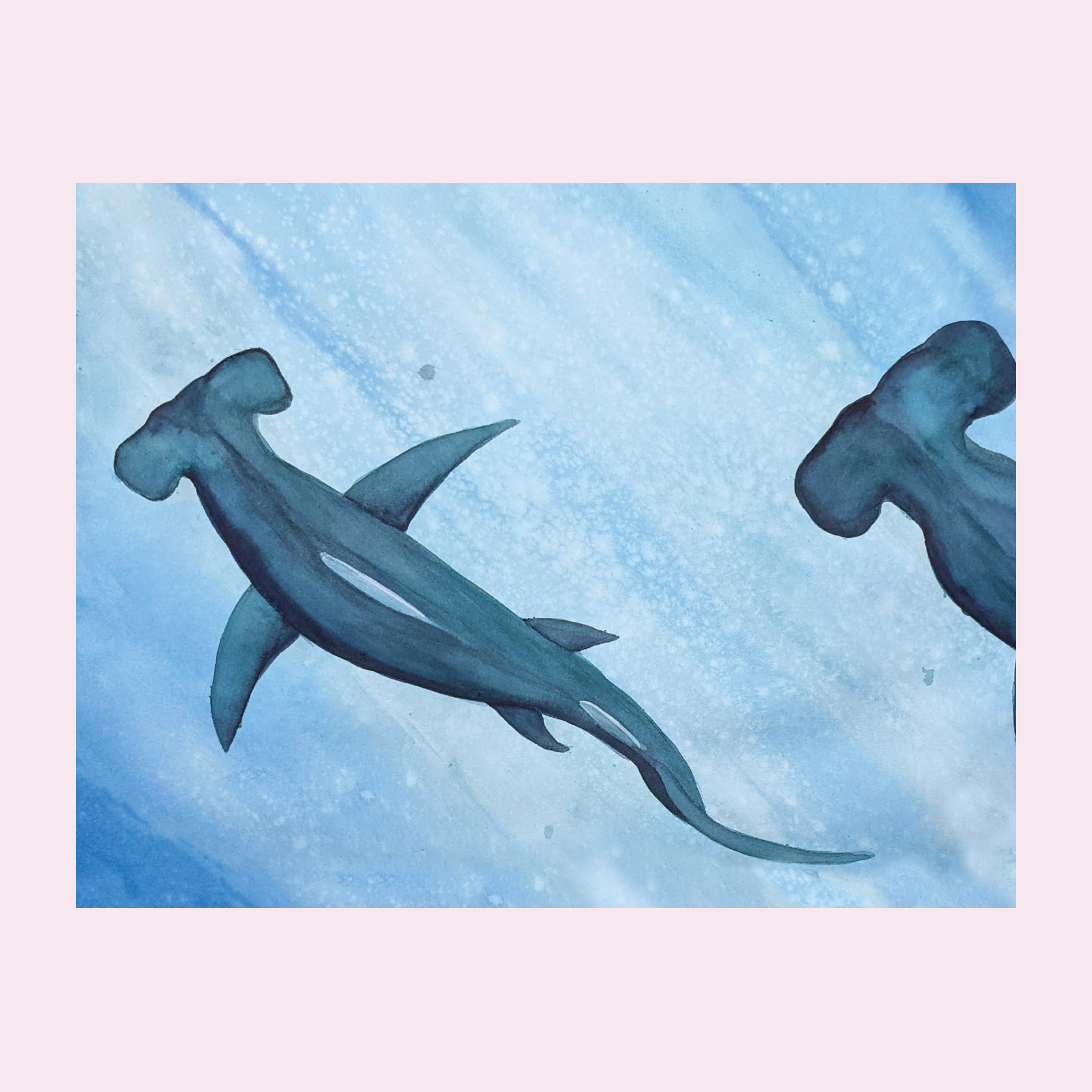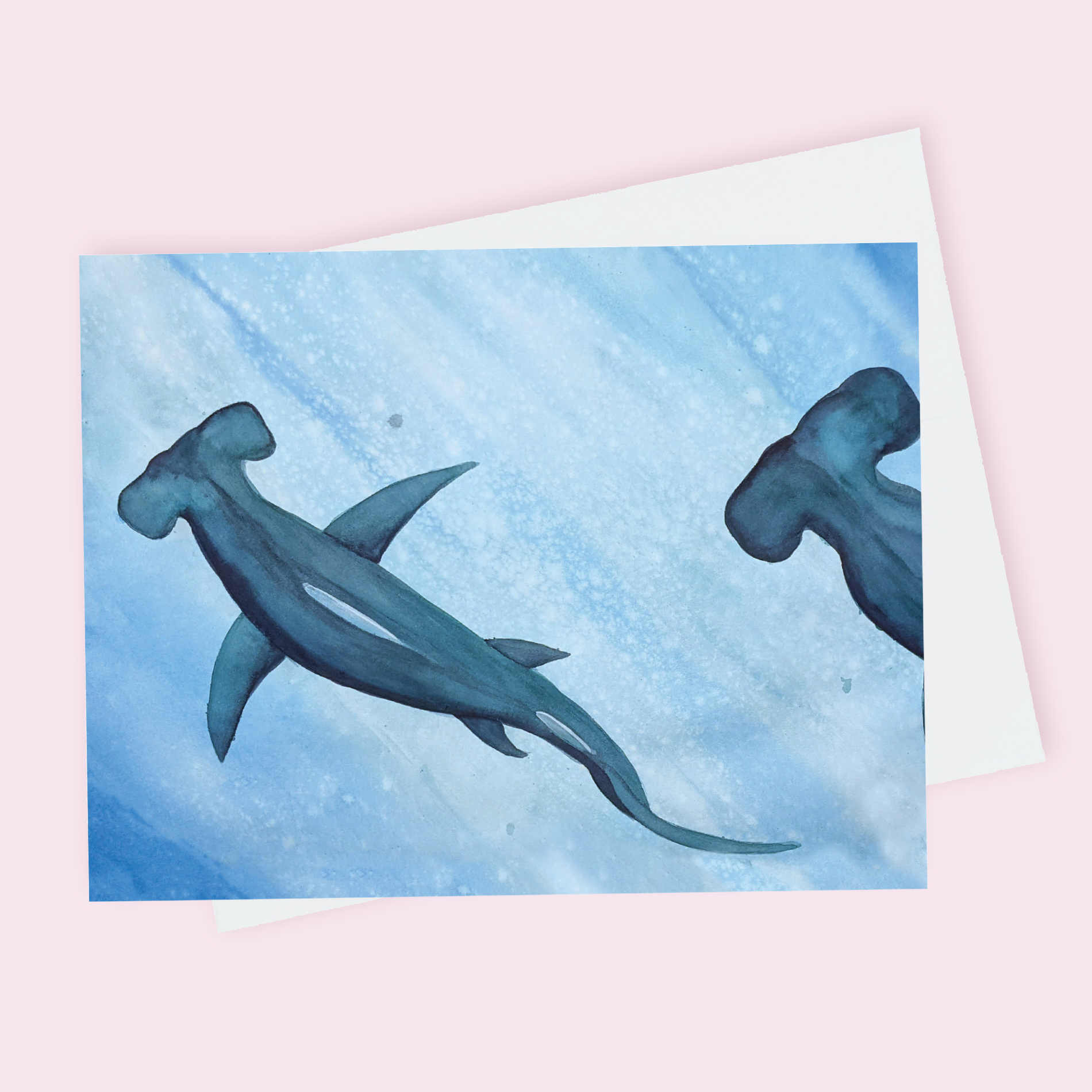 This bold Hammerhead Sharks greeting card features two hammerhead sharks gliding through a deep blue ocean, capturing the sleek power of these fascinating creatures. Thoughtfully designed, it’s perfect for sea life lovers and striking, ocean-themed messages.