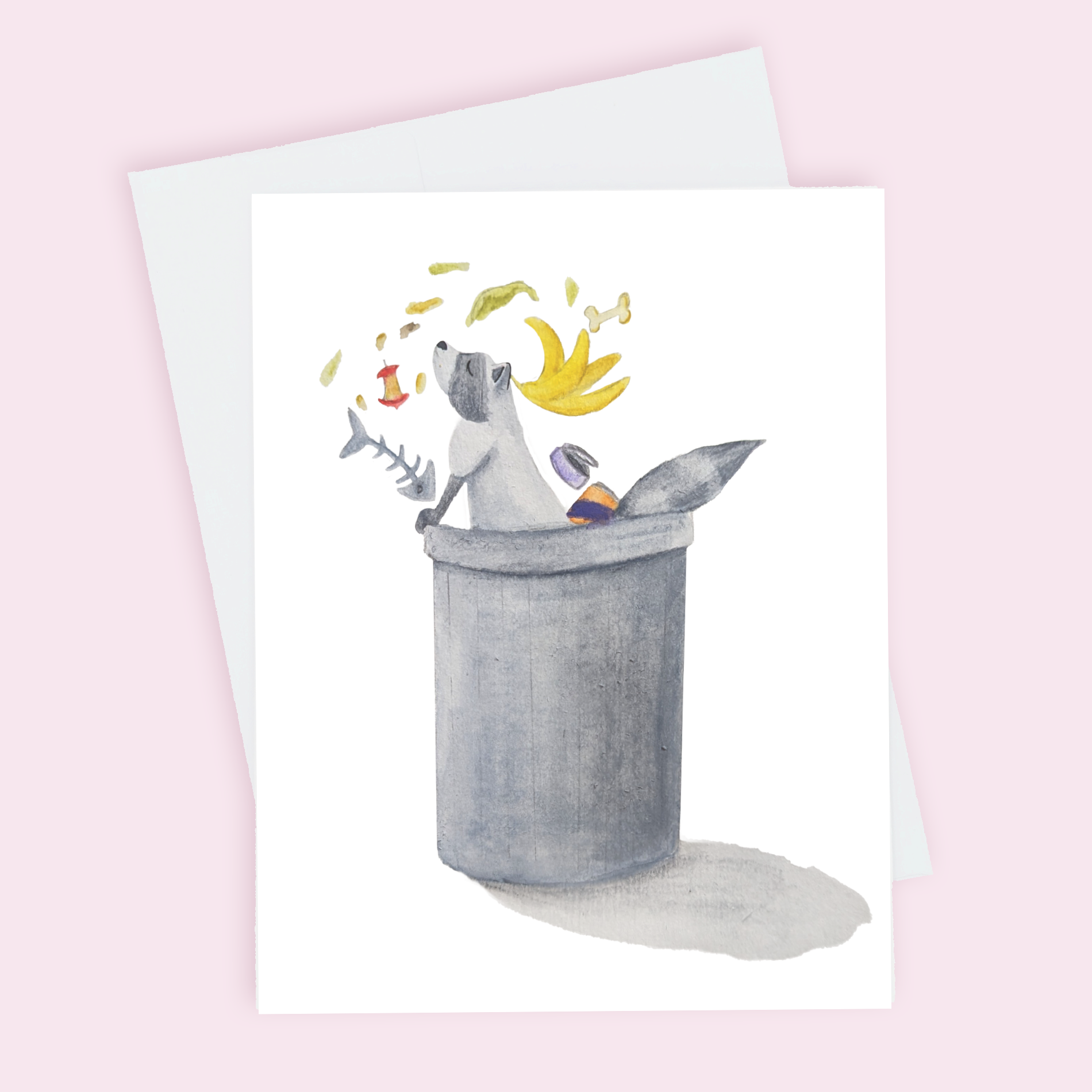 This cheeky Trash Panda greeting card showcases a mischievous raccoon peeking out of a trash can, making it a fun and quirky choice for animal lovers. This card brings a touch of humor and wild charm to any message, ideal for those who appreciate a bit of playful chaos.